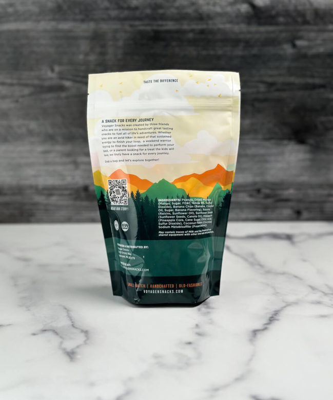 Peanuts, Dried Mango (Mango, Sugar, FD&C Yellow #5, Sulfur Dioxide), Banana Chips (Banana, Coconut Oil, Sugar, Banana Flavoring), Raisins (Raisins, Sunflower Oil), Sunflower Seeds (Sunflower Seeds, Canola Oil), Pineapple (Pineapple Core, Cane Sugar, Citric Acid, Sulfur Dioxide), Coconut Flakes (Coconut, Sodium Metabisulfite (Preservative)).